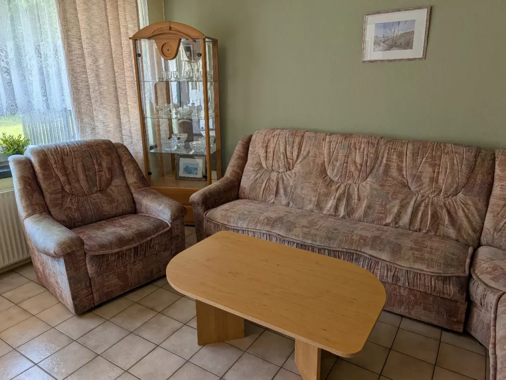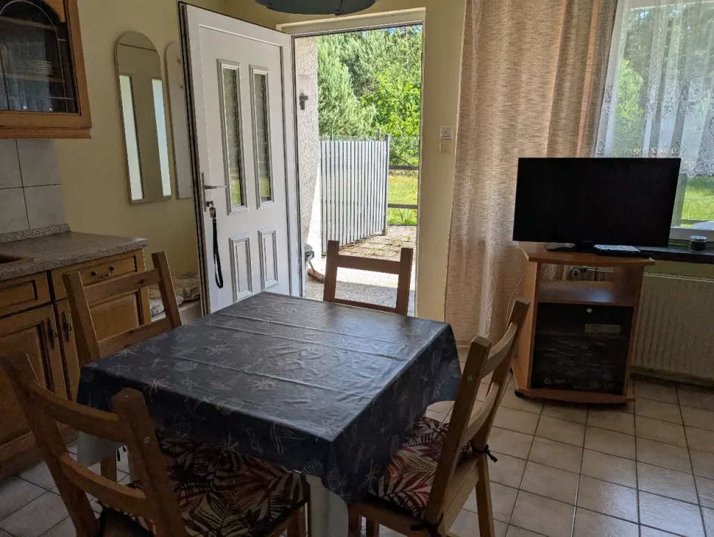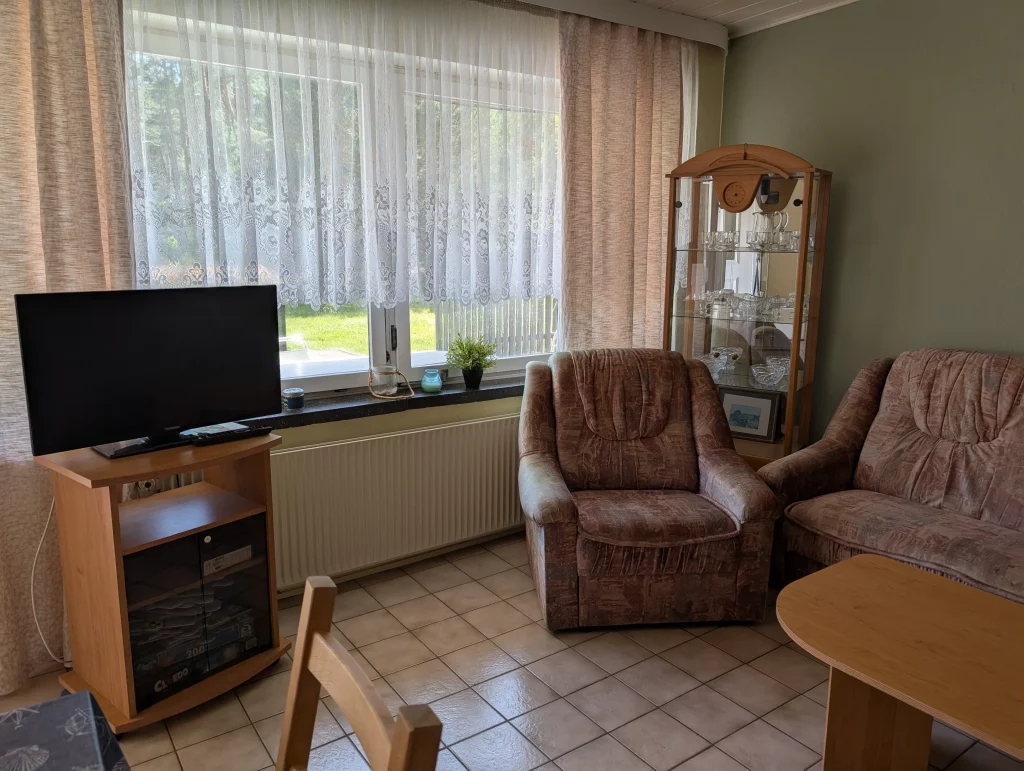 Unser Ferienhaus bietet einen gemütlichen Wohnraum, eine praktische Miniküche, ein separates Schlafzimmer sowie ein Kinderzimmer. Zur Ausstattung gehören selbstverständlich TV, Bad mit Dusche und WC.